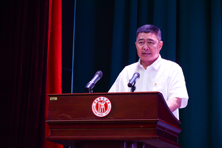 运动训练学院足球教研室教师张兴泉代表全体教师发言,希望同学们学会自立自强,懂得独立思考,心存感恩,勇于担当,积累知识,增长才干,树立远大目标,勇于拼搏!