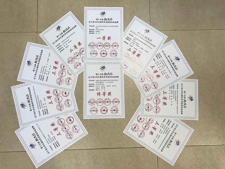 由共青团辽宁省委员会、辽宁省教育厅、省科学技术厅、省科学技术协会、省知识产权局、辽宁社会科学院、省学生联合会共同主办的第十五届“挑战杯”辽宁省大学生课外学术科技作品竞赛决赛圆满落幕,我校共有10件作品获得省级奖项,其中特等奖 1项、一等奖1项、二等奖2项、三等奖6项,教师董传升、王宏、崔伟、任思琦获优秀指导教师称号。