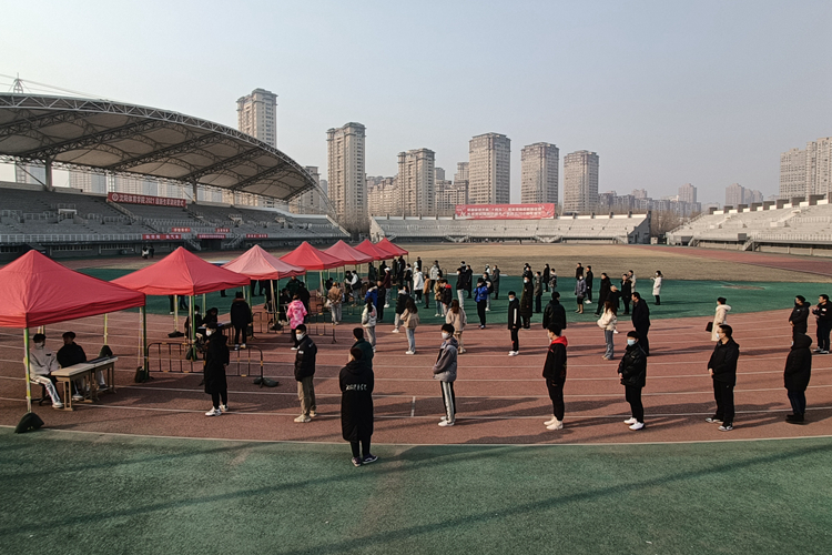 演练围绕学生入校、异常情况处理、学生公寓检查等多项内容进行。学校南门设置学生返校报到区,返校学生按照返校流程,从入校等待区排队,前后间隔一米,形成蛇形排列等待入校,工作人员对入校学生进行身份验证、健康码检查、核酸报告查验后,经过消毒学生方可入校。入校后学生沿闭环线路到达校内核酸检测区进行核酸检测及返校报到。