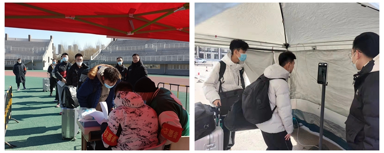 返校期间,学工队伍、保卫人员、后勤人员、实验室管理中心人员、学生志愿者每天提前到岗,在学校南门热情迎接学生归来。学生凭“辽事通健康通行码”和“国务院客户端防疫行程卡”绿码及返校登车(机、船)前48小时内核酸检测阴性证明、测量体温正常后入校,入校后沿闭环路线第一时间再次进行核酸检测。学校各单位、各部门尽职尽责、通力合作,返校报到工作严谨细致、有条不紊。