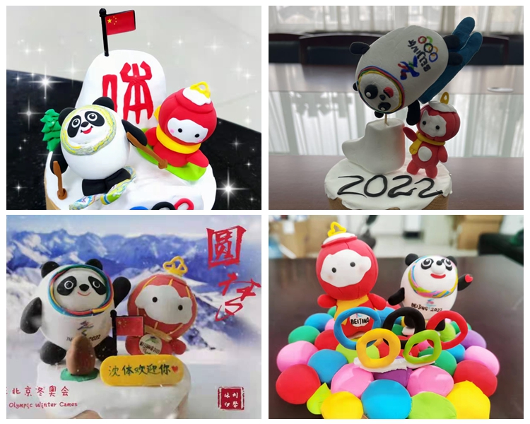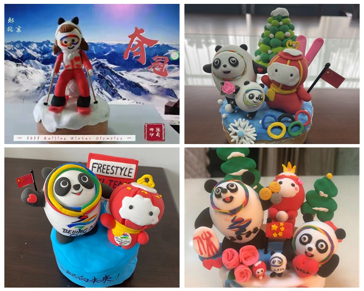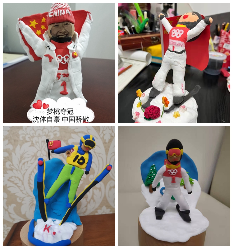 女教职工们结合北京冬奥会主题,发挥丰富的想象力、创造力,精心构思,用一双双巧手,通过“揉、捏、搓、压、切”等精雕细琢,制作出一个个形态各异,栩栩如生,惹人喜爱,的彩泥造型,有北京冬奥会和冬残奥会吉祥物“冰墩墩”“雪容融”形象,有奥运五环雪人,还有北京冬奥会运动员的卡通形象在发音盒上伴着美妙的音符旋转。