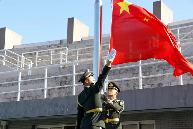 全体肃立升国旗奏唱国歌。
