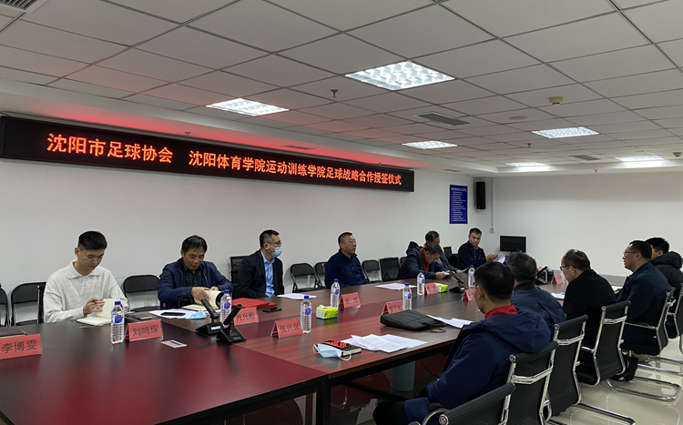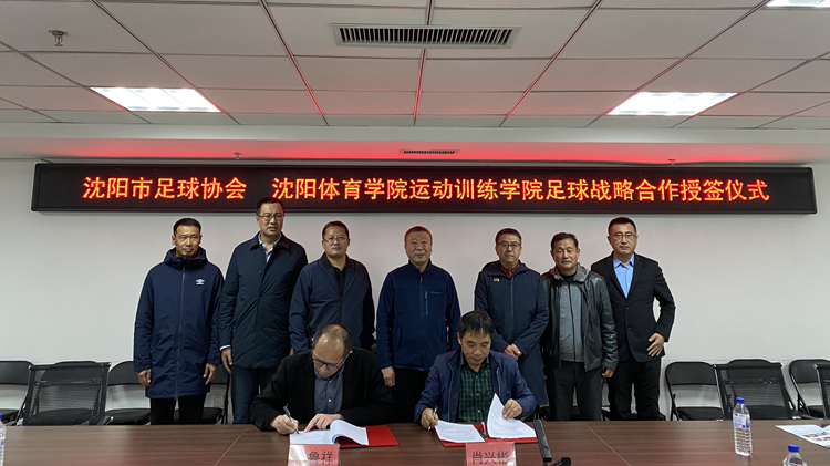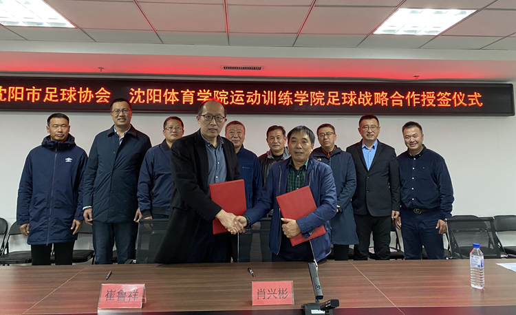 10月26日,沈阳体育学院运动训练学院与沈阳市足球协会议签订战略合作框架协议。沈阳市体育局副局长曹洪、竞体处处长李德新、青少处处长杨旭;沈阳市足球协会秘书长范广会、副秘书长肖兴彬、技术部部长岳振宇;沈阳体育学院相关人员参加签约仪式。