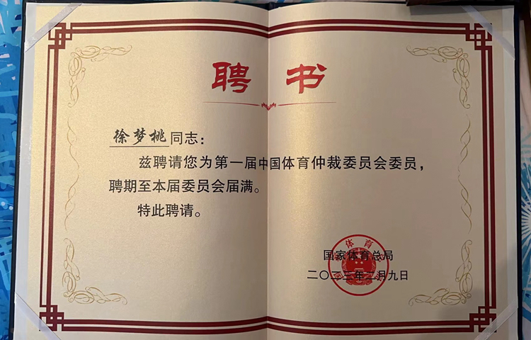 据新华社2月11日报道,中国体育仲裁委员会在京召开成立会议暨第一届委员会第一次全体会议。奥运冠军、我校教师徐梦桃受聘为第一届中国体育仲裁委员会委员。