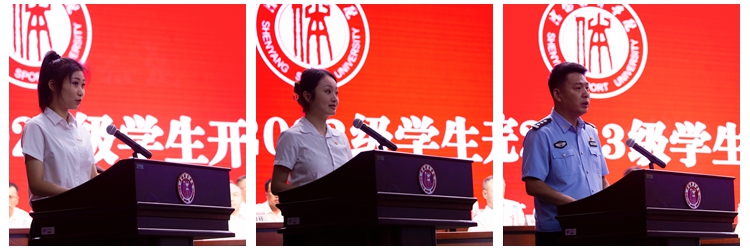 熊晓彤同学代表2023级新生发言。曹卫盟同学代表全体在校生发言。刘超先生代表2023级学生家长致辞。
