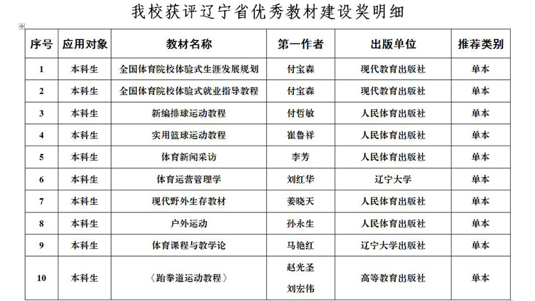 近日,辽宁省首届全国教材建设奖评选结果出炉,我校推荐的10部本科教材获辽宁省首届优秀教材建设奖。