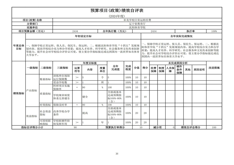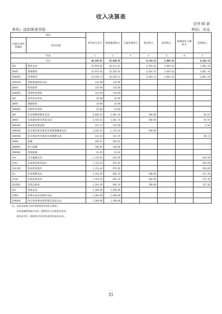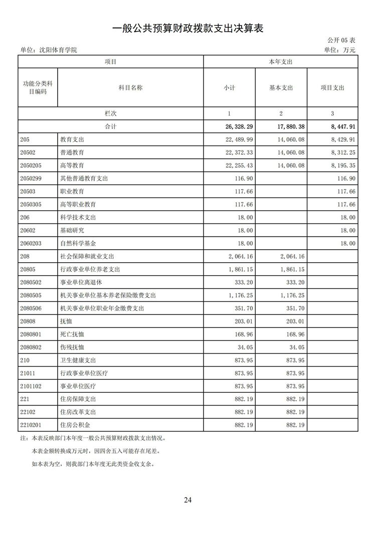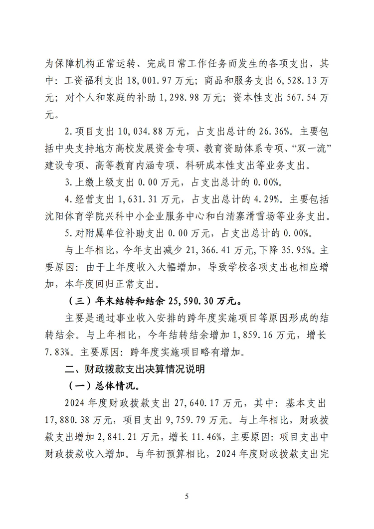 沈阳体育学院2024年度决算